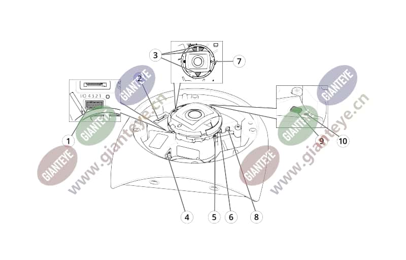 Use the I/O connector with external devices in combination with, for example, motion detection, event triggering, and alarm notifications. In addition to the 0 V DC reference point and power (12 V DC output), the I/O connector provides the interface to: